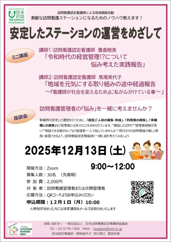 訪問看護ステーション管理者を対象として「ミニ講座&座談会」をZoom開催!